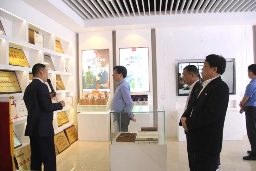 張健一行聽取關于“湘潭檳榔”的由來以及賓之郎發展歷史及榮譽介紹