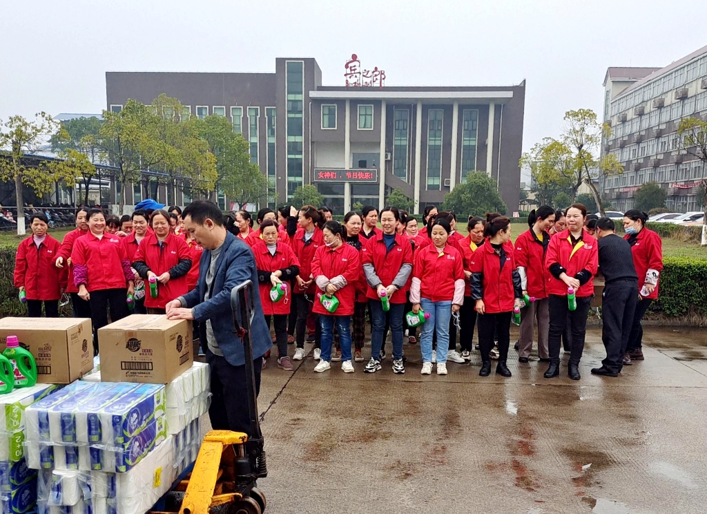 在3月8日當天,賓之郎集團還為全體女職工發放購物券或生活物資,向她們致以節日最誠摯的問候。