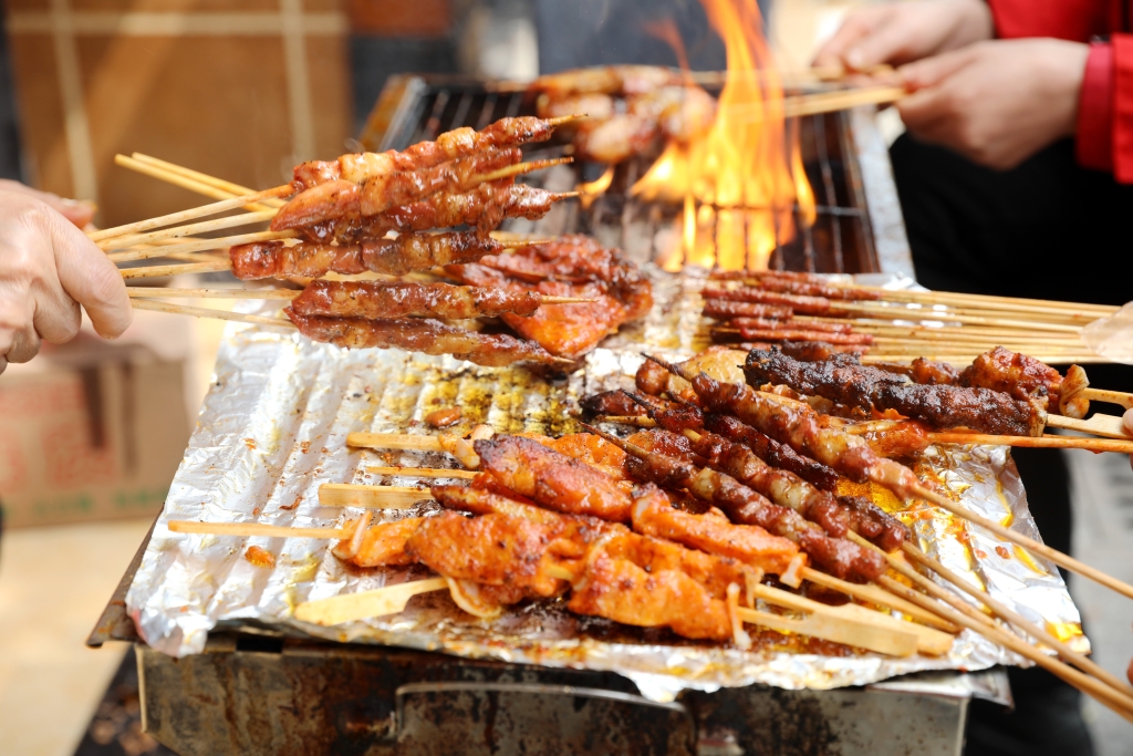 燒烤架上,滋滋冒油的烤肉,散發著誘人的香味,組與組之間,分享著各自的美食。